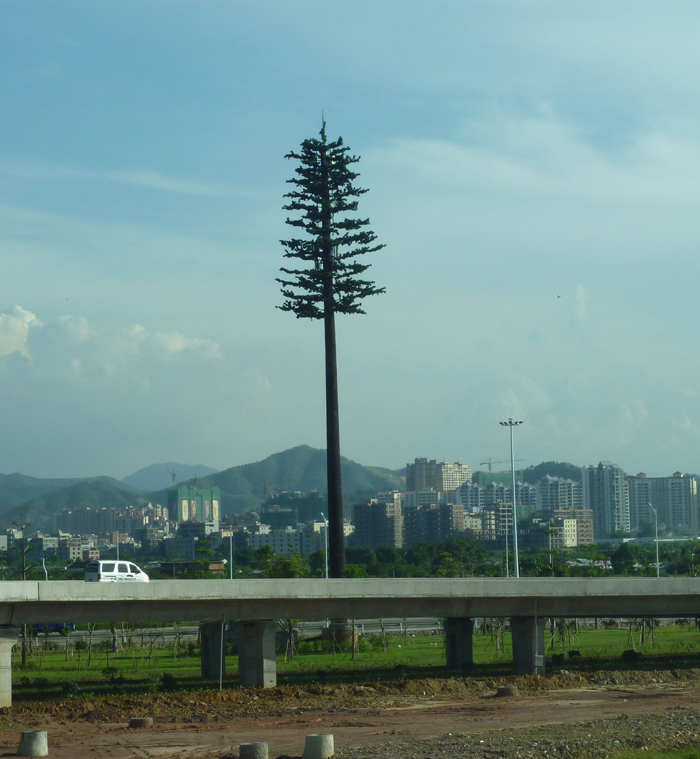 在單管通信塔的基礎上,外飾仿自然樹木材料,其外形逼真、美觀,與周圍環境完美融合;