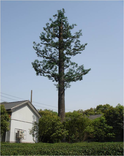 在單管通信塔的基礎上,外飾仿自然樹木材料,其外形逼真、美觀,與周圍環境完美融合;