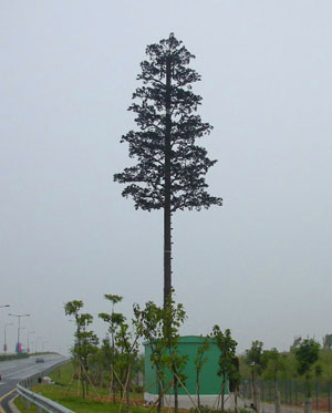 在單管通信塔的基礎上,外飾仿自然樹木材料,其外形逼真、美觀,與周圍環境完美融合;